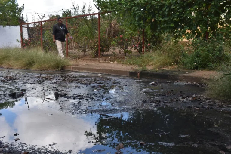 El agua negra (cloacas) brota de la calle como si fuera fuente de una plaza, con borbollones de intensa fetidez